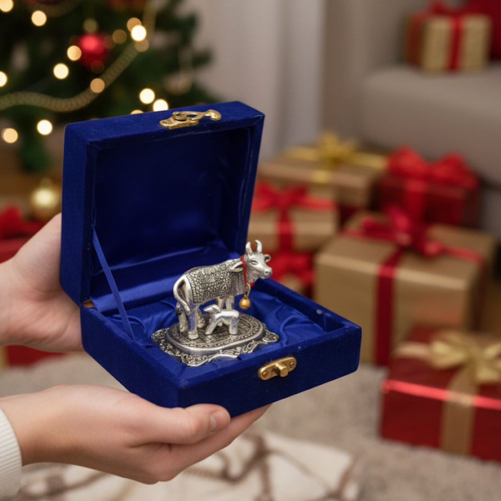 Decorative Kamdhenu Cow & Calf Statue | Feng Shui, Vastu, Pooja & Tabletop Decor